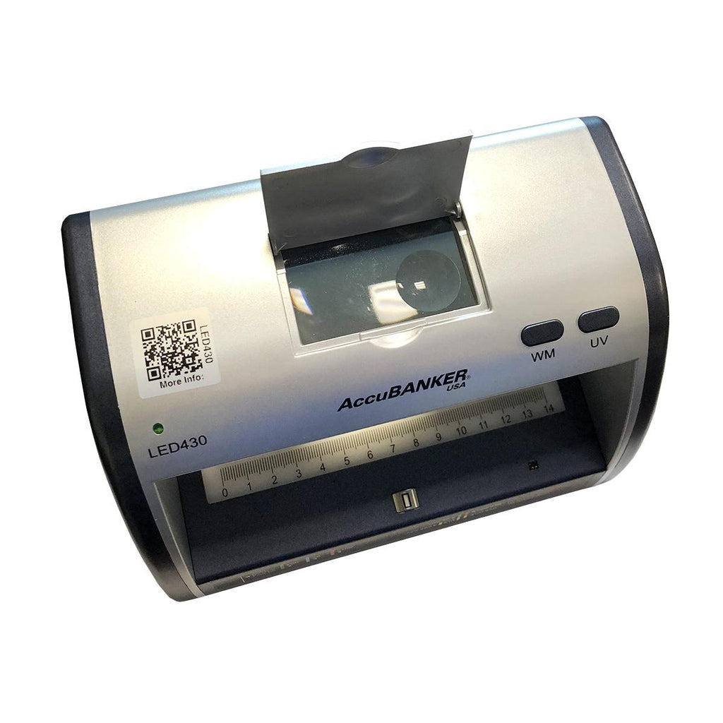 Accubanker Led430 Counterfeit Detector. AccuBANKER LED430 counterfeit detector cashtech.eu IDEAL FOR BUSINESS: The LED430 Cash and Card Counterfeit Detector is great for banks, bars, gas stations, nightclubs, restaurants, movie theaters, and other large retail stores.. AccuBanker LED430 Counterfeit Bill & Document Validator With Magnifier, 4-7/16"H